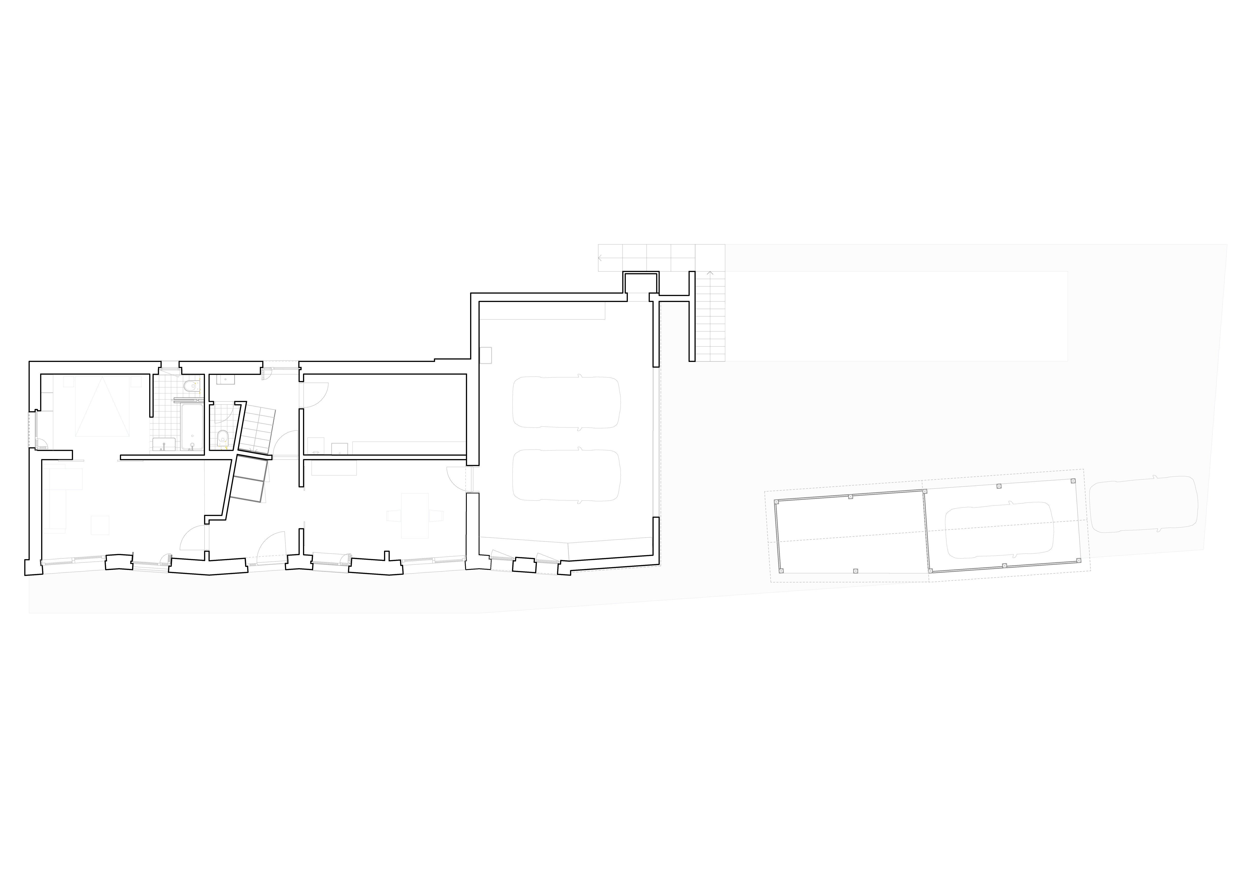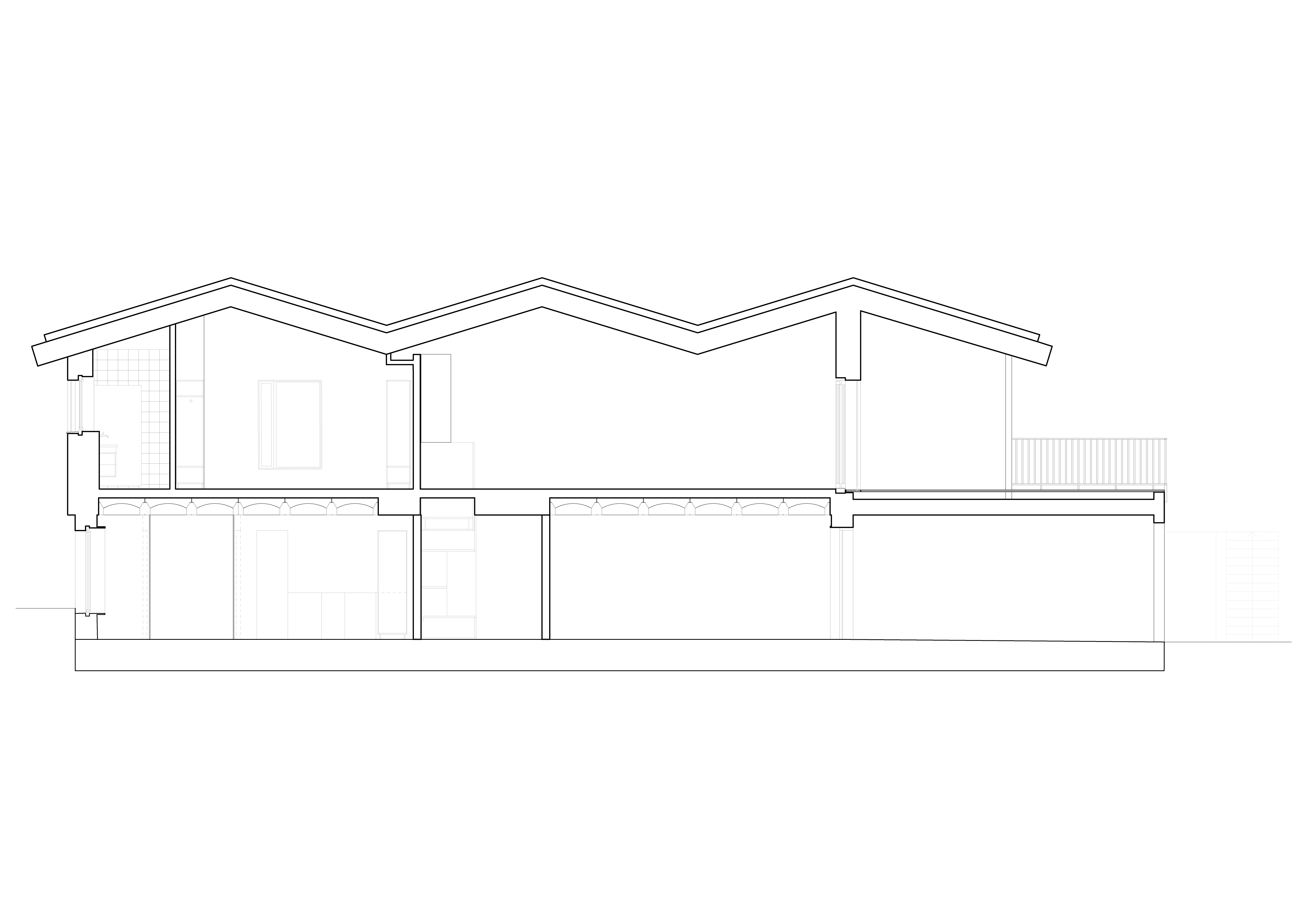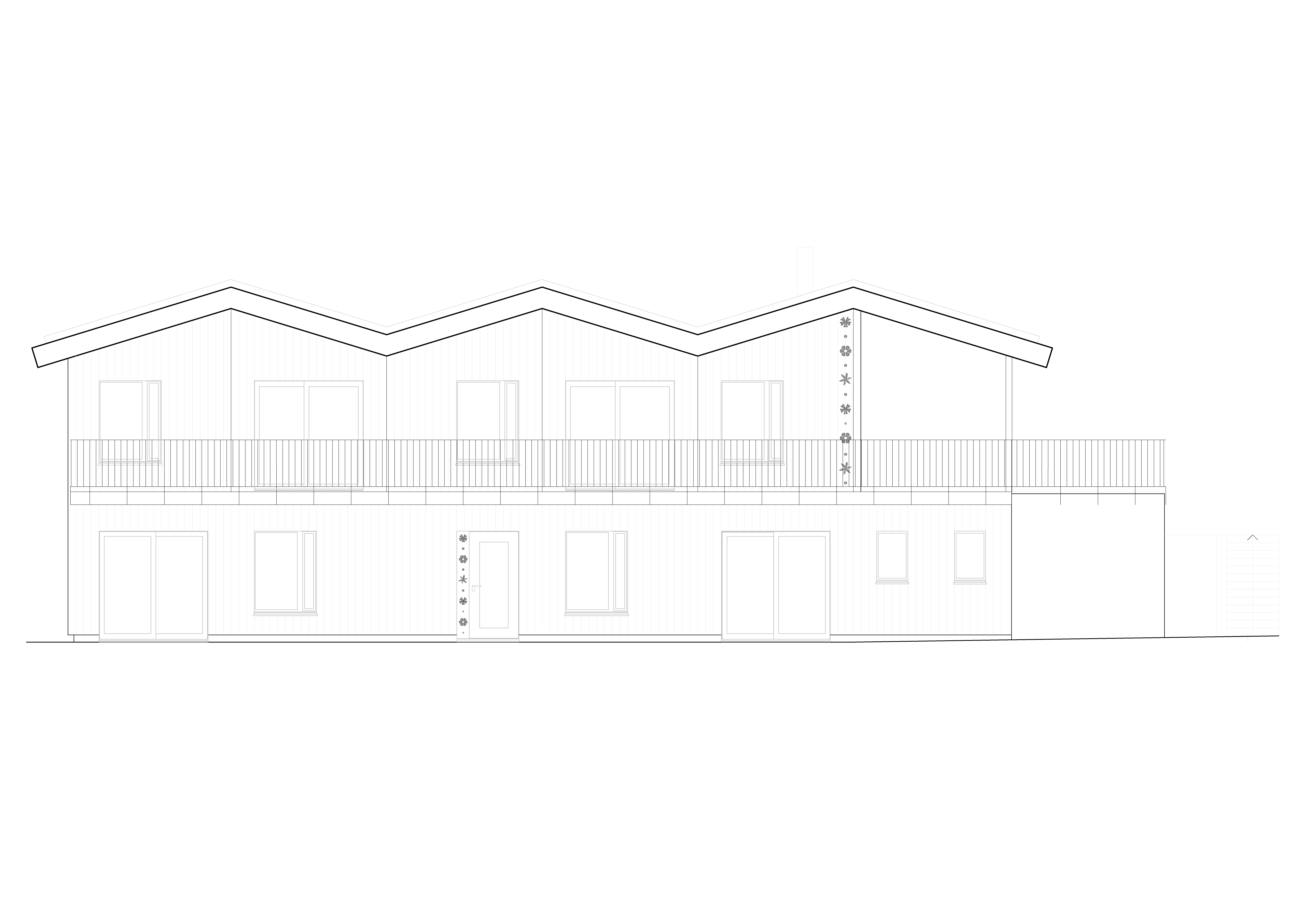 À l'extérieur, le balcon filant s'offre comme un belvédère aérien, semblant suspendu à la « toiture-montagne ». La grande terrasse, s'étire en une pente douce, se raccordant naturellement aux courbes du terrain pour offrir un lieu de contemplation serein.